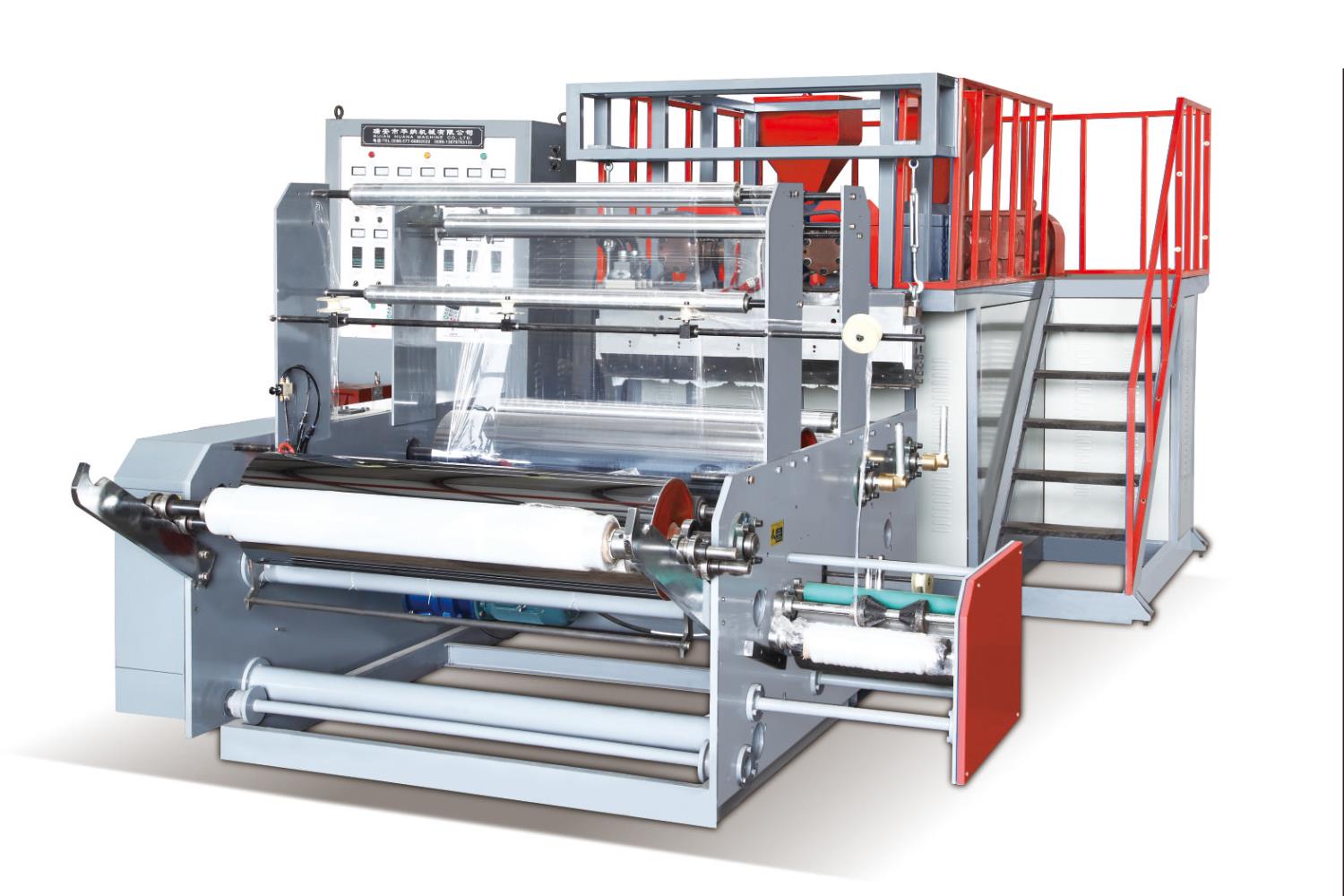 本机组以LLDPE (线型低密度聚乙烯)为主要原料,采用几种不同牌号的树脂,通过挤出机挤出而生产出具有自粘性的单面粘或双面粘拉伸缠绕膜,该膜具有较高的拉伸强度、抗穿刺能力及耐冲击性。缠绕膜具有良好的回缩记忆及自粘性,能使货物紧裹成一个整体 ,防止运输时散落倒塌及灰尘污染,并且该膜还具有优良的透明度和延伸性,能使包装物品美观大方,经济实用。可广泛用于大宗货物的集装化托盘包装,是运输中用热收缩包装膜较好的替代产品。